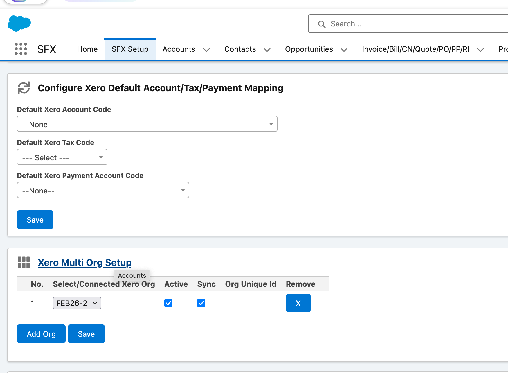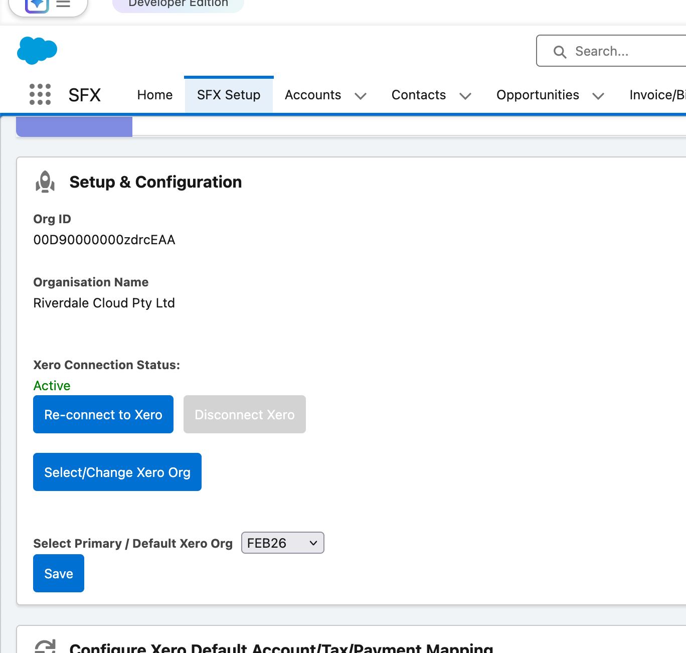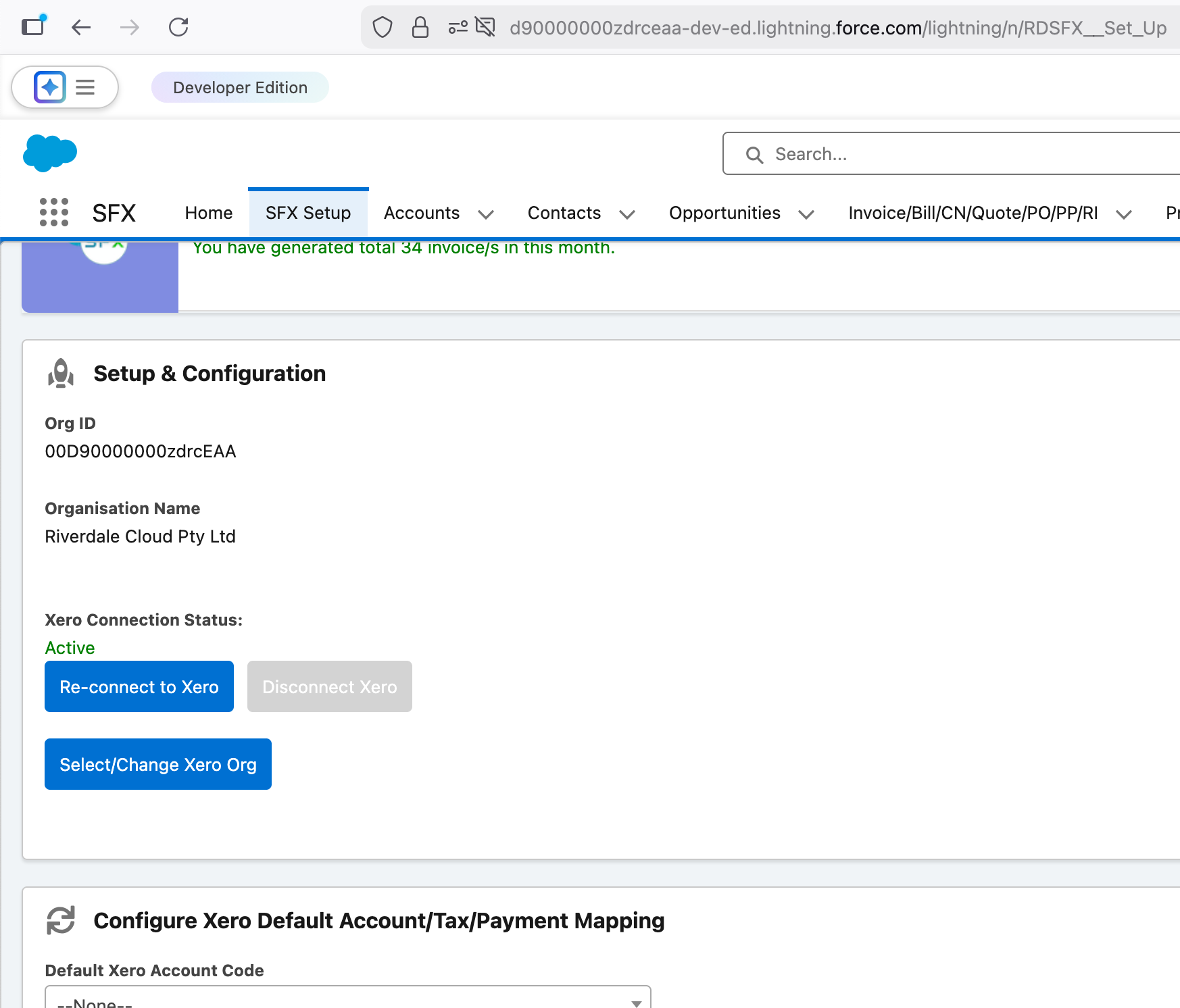 Following this step, back on the SFX Setup tab, click on [ Select/Change Xero Org ]