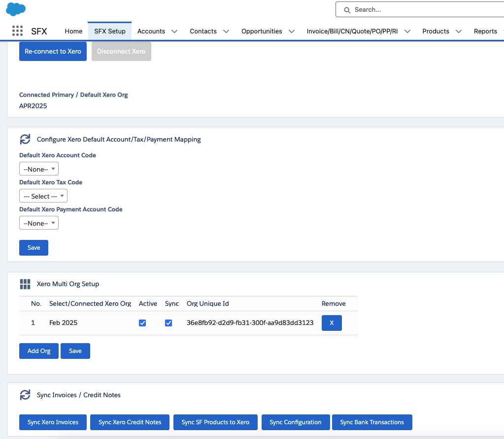 Go to Salesforce → SFX Setup - > SFX - Product Sync (SF to Xero).