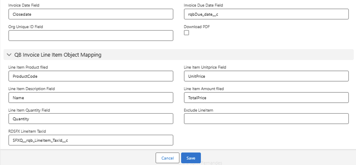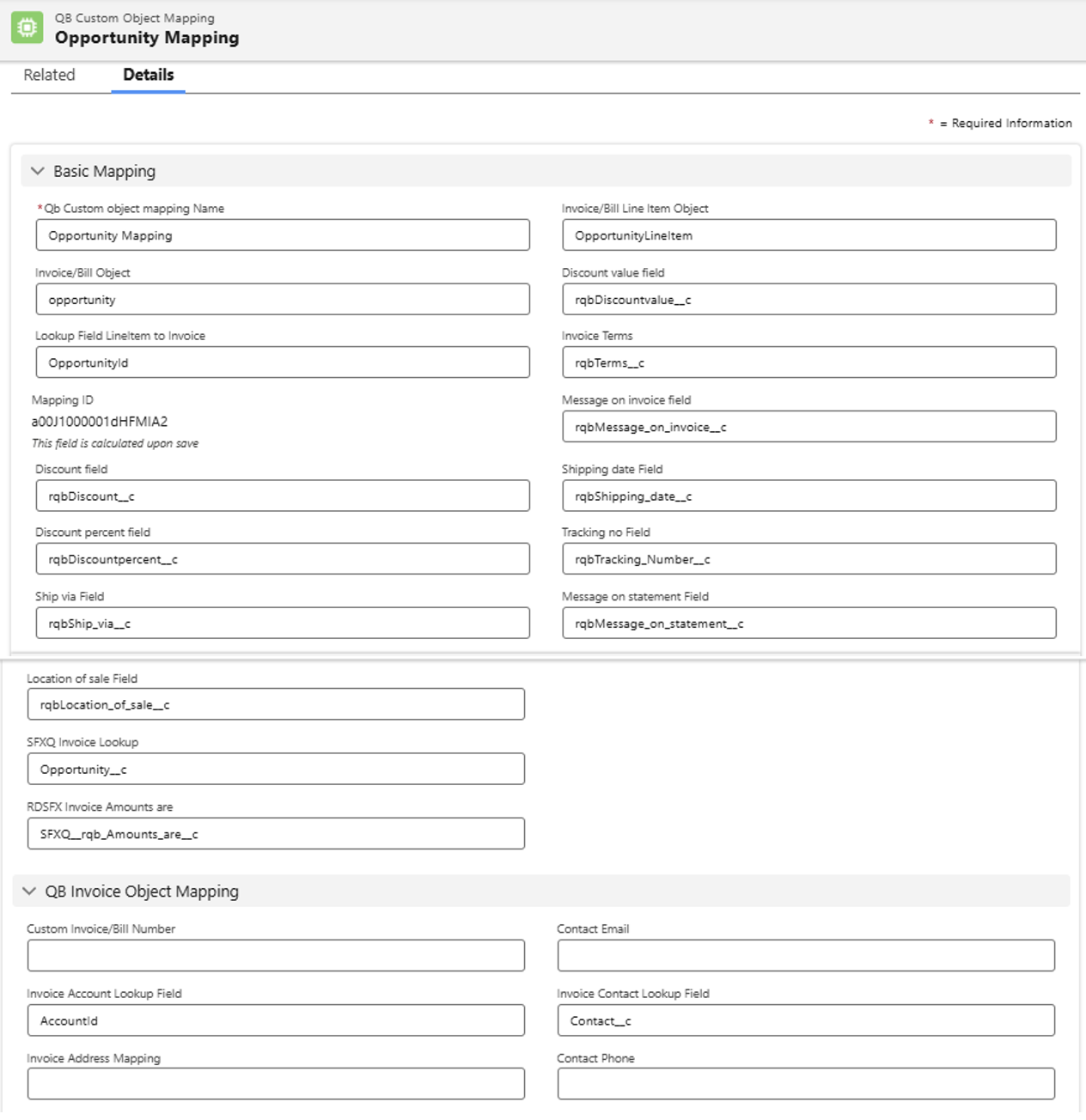Use the provided screen to map any custom Salesforce object to an invoice.