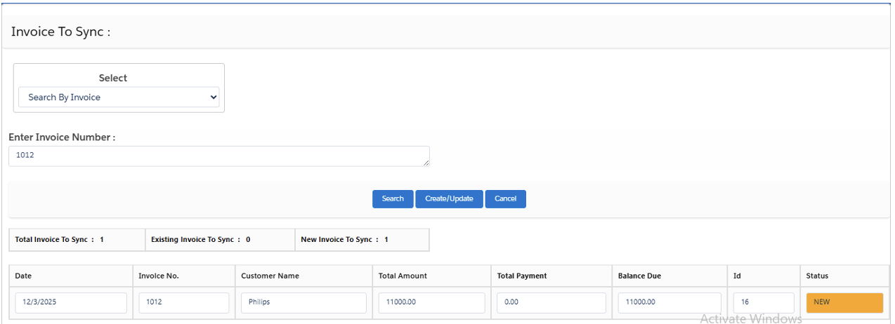 If the customer record does not exist in Salesforce, the invoice will be loaded to the Unmapped Invoice section.